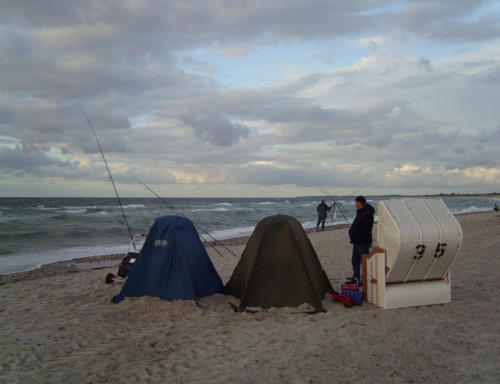 findet wie der Name schon sagt in der Brandung statt, also vom Strand aus.Da das Brandungsangeln auf Dorsch und Plattfisch nur in den Monaten September bis Mai möglich ist, braucht man warme Kleidung und eine spezielle Angelausrüstung.Die Angelzeit beginnt cirka 2 Stunden vor Anbruch der Dämmerung und kann je nach Lust, Laune und Wetter bis tief in die Nacht dauern.Gegen Hunger und Durst hilft Kaffee, Grog und ein transportabler Grill.